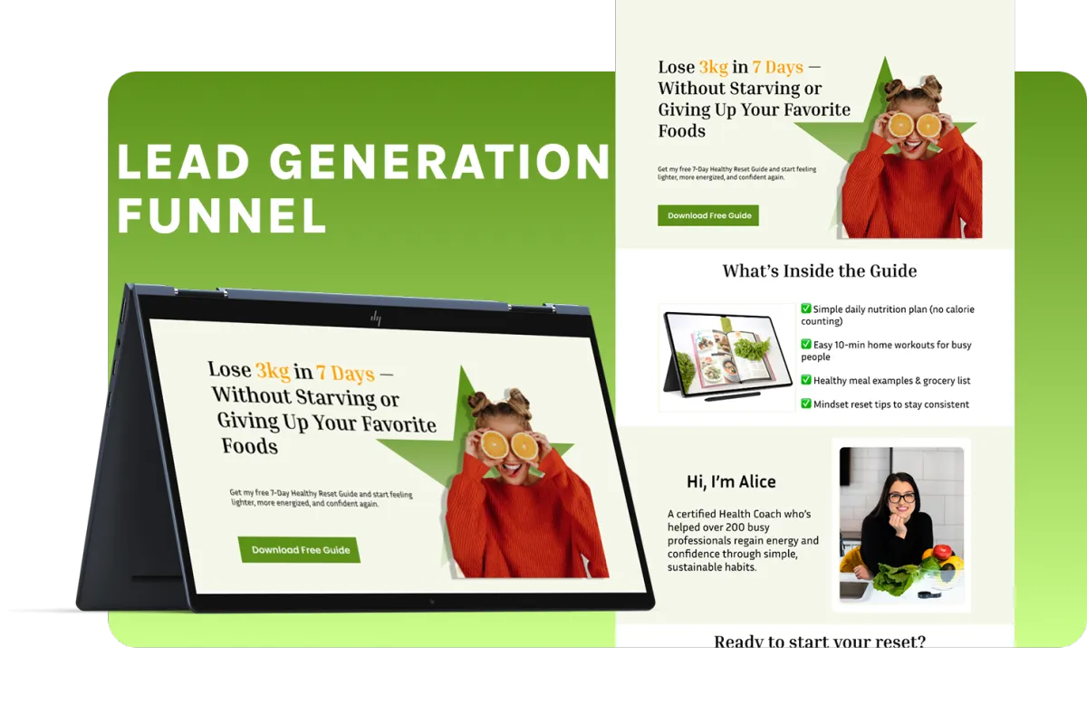 I’m a funnel designer who creates clean, intentional layouts that guide your visitors to take action — with no fluff.